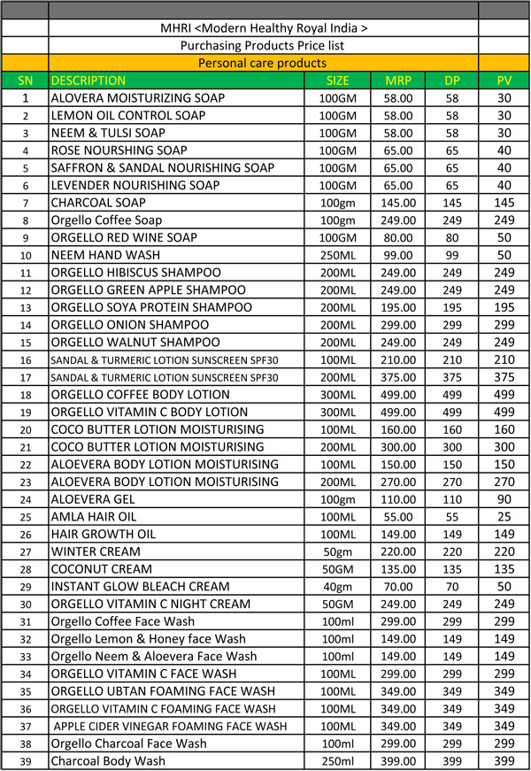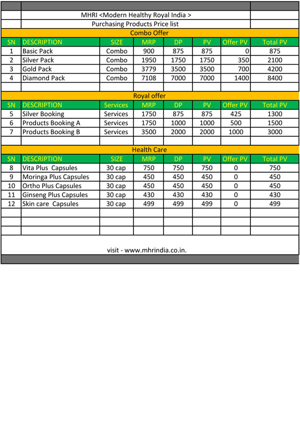 MHRI-HEALTH CARE COMBO PRICE LIST